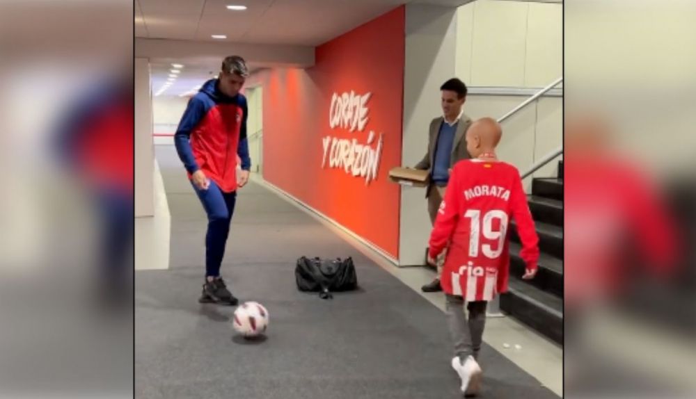 "Tú eres una luchadora", le dijo el jugador a María, que le entregó un regalo al goleador. Morata le firmó la camiseta y a la salida del vestuario estuvo dando unos toques al balón junto a una pequeña que pasó una jornada inolvidable.