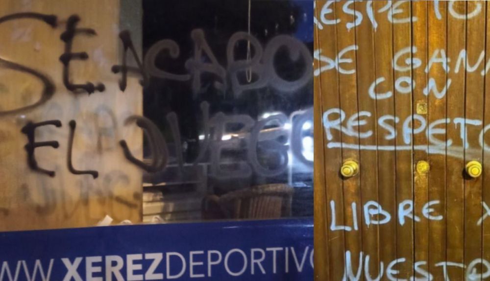 A este incidente se han sumado el intercambio de pintadas. Por un lado, en la vivienda y la empresa de un socio del Xerez CD han aparecido mensajes de "el respeto se gana con respeto", mientras que la sede social del Xerez DFC ha amanecido con el mensaje: "Se acabó el juego".