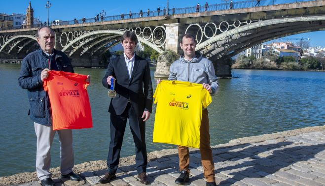 El Zurich Maratón de Sevilla ha presentado este miércoles la medalla conmemorativa que se entregará a los corredores que finalicen su edición XXXVII y que celebra los 170 años de la construcción del Puente de Isabel II, conocido popularmente como Puente de Triana, que se inauguró oficialmente un 23 de febrero de 1852. Con este homenaje, el Ayuntamiento de Sevilla ha querido destacar “la relevancia de la efeméride, con la que ponemos en valor un icono de la unión de las orillas de Sevilla y Triana. Se trata de un símbolo que nos representa en todo el mundo y un bien de interés cultural forma parte del presente de este Zurich Maratón, que quiere batir todos sus récords”, según ha destacado el delegado de Transición Ecológica y Deportes del Ayuntamiento de Sevilla, David Guevara, que ha participado en esta presentación junto a José María Gavela, de Motorpress Ibérica.