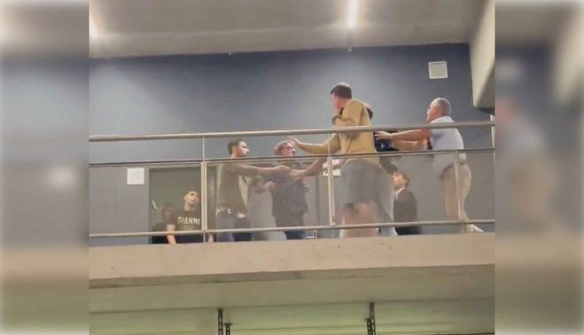 En el vídeo que circula en redes sociales puede verse cómo el enfrentamiento fue seguido entre gritos y silbidos por aficionados locales que se encontraban situados en la parte de abajo. Las imágenes de la trifulca muestran a varias personas enfrentándose. Entre los presentes en el altercado se encontraba Joan Collet, quien fue presidente del Espanyol entre 2012 y 2016 y que intentó mediar en la situación.