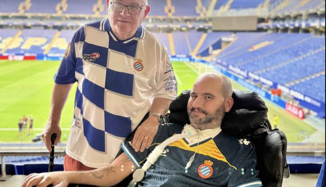 Jordi Sabaté Pons, activista en la lucha contra la esclerosis lateral amiotrófica (ELA) desde hace más de una década, ha lanzado una petición pública al Real Madrid con motivo del encuentro que enfrentará al conjunto blanco con el RCD Espanyol el próximo 20 de septiembre en el Santiago Bernabéu. Jordi, confeso seguidor perico, ha dirigido un mensaje a la entidad presidida por Florentino Pérez en el que expresaba su deseo de acudir al estadio para presenciar el partido.