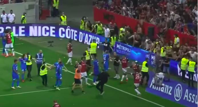 Vergonzosas las imágenes que están dando la vuelta al mundo tras el partido en Francia entre Niza y Olympique de Marsella. Los aficionados del equipo local lanzaron objetos desde la grada y saltaron al terreno de juego para agredir a los futbolistas del conjunto marsellés. El encuentro acabó en una auténtica batalla campal.