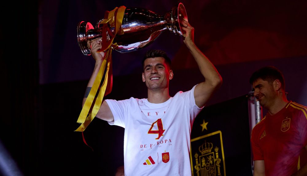 En aquella noche de celebración, Álvaro Morata ejerció de presentador de sus compañeros. Pasó mucho tiempo micrófono en mano saludando a la afición y al resto de jugadores. Se vino arriba el ya exdelantero del Atlético de Madrid, hoy en el AC Milan.