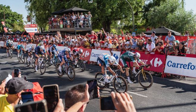 La razón obvia es el calor, que ha marcado la jornada en la ciudad. El ciclismo, como el fútbol, tiene adeptos presenciales, pero donde rompe los esquemas es en la tele. Ahí sí. Buena parte de España ha visto la llegada de La Vuelta a Sevilla en una etapa llana con premios al sprint, con puntos en el intermedio de La Algaba.