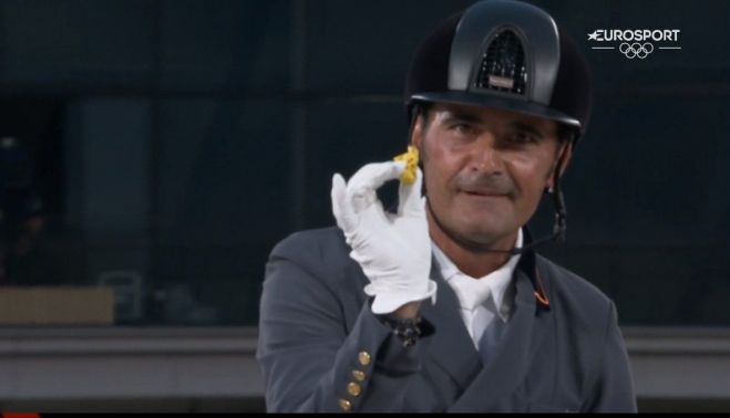 Una imagen de José Antonio García Mena, diploma olímpico en Tokio, se convirtió en viral al finalizar su ejercicio de doma clásica. El jinete de Medina Sidonia sacó del bolsillo un pequeño muñeco de Pikachu, el icónico protagonista de la saga nipona de Pokémon. Lo llevaba como amuleto que le había dado su hijo antes de partir para Japón. También portaba una pulsera que le había regalado su hija. Y en ese momento deportivo tan importante, ante las televisiones de medio mundo, José Antonio tuvo un precioso gesto hacia sus hijos, de los que llevaba más de un mes distanciado por la preparación olímpica.