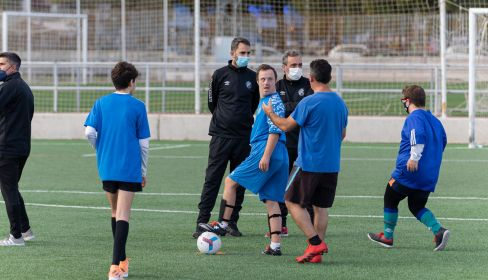 Junto a Pedrosa, Juan Carlos Ramírez, coordinador de cantera del Xerez DFC, se encarga de dirigir los entrenamientos de la división para personas con discapacidad. “Las técnicas de Afanas —las dos Marías, como él las llama— son clave en este proyecto”, dice Juan Antonio Pedrosa, quien es la primera vez que entrena a un conjunto de estas características.