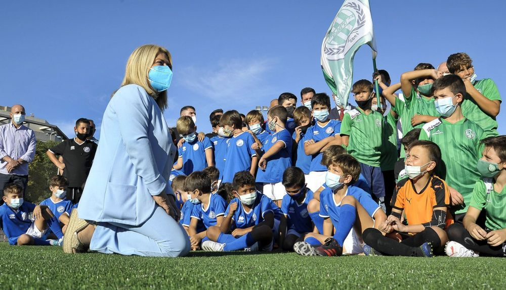 La alcaldesa de Jerez, Mamen Sánchez, junto a miembros del equipo de Gobierno local, y acompañada del vicepresidente de la Real Federación Andaluza de Fútbol, José Antonio Bernal, así como de los presidentes del Xerez DFC y Pueblo Nuevo, como clubes usuarios, ha inaugurado hoy el Campo 2 del Complejo Deportivo La Granja.