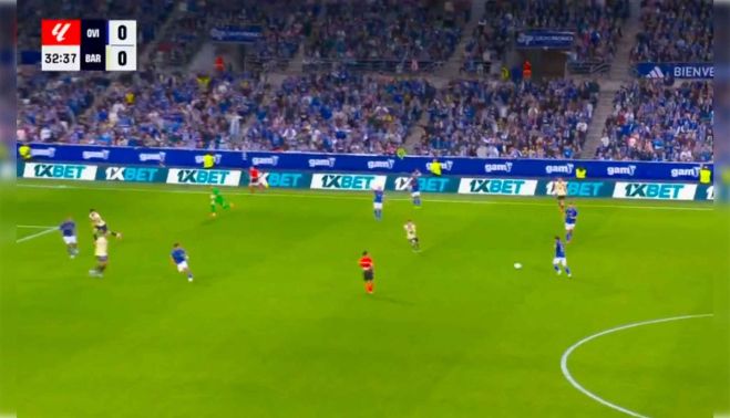 Casi desde Chiclana le ha pegado Alberto Reina, jugador del Real Oviedo, para firmar un auténtico golazo ante el Barcelona en el Carlos Tartiere. La jugada ha llegado tras un error monumental de Joan García, que salió a la banda para intentar combinar con Casadó, pero perdió el control de la acción. Reina, rápido y decidido, ha conectado un disparo de primeras desde unos 40 metros que ha sorprendido a todos.