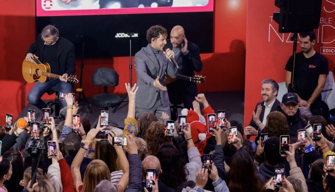 Sin previo aviso, Bisbal se ha subido a un pequeño escenario habilitado en el vestíbulo y ha arrancado un recital de aproximadamente 20 minutos. Durante ese tiempo ha interpretado cuatro canciones, combinando clásicos navideños con algunos de sus éxitos más conocidos. Entre los villancicos destacan su versión de El burrito sabanero, que ya popularizó la pasada Navidad, Los peces en el río y Todo es posible en Navidad, para cerrar con su emblemático Ave María.