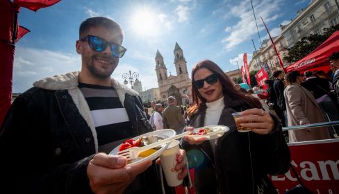 A la ritual recogida de platos de ostiones por parte del público se sumaba este año una degustación, también gratuita, de pimientos asados. En este caso los aportaban las empresas Huerta Campo Rico y Celebraciones Yeyo.