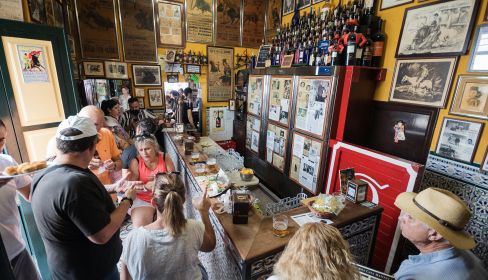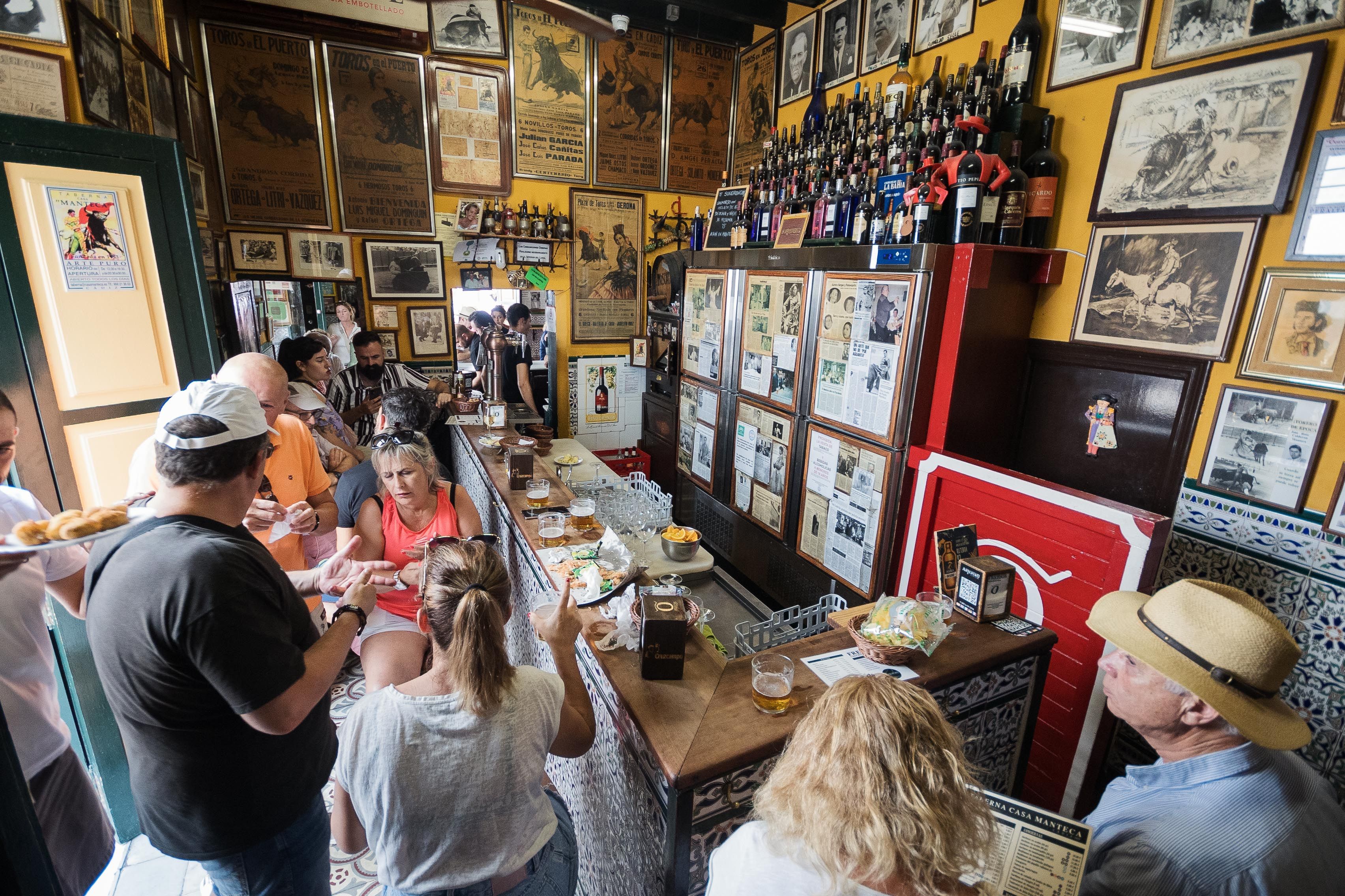 Desde su entrada, prescindieron del almacén de comestibles y centraron la actividad en la taberna. Además, se atrevieron a ir más allá y abrieron una freiduría justo enfrente de Casa Manteca donde los fieles, turistas y vecinos pueden comprar pescaíto frito y tomárselo sentados en este lugar emblemático.