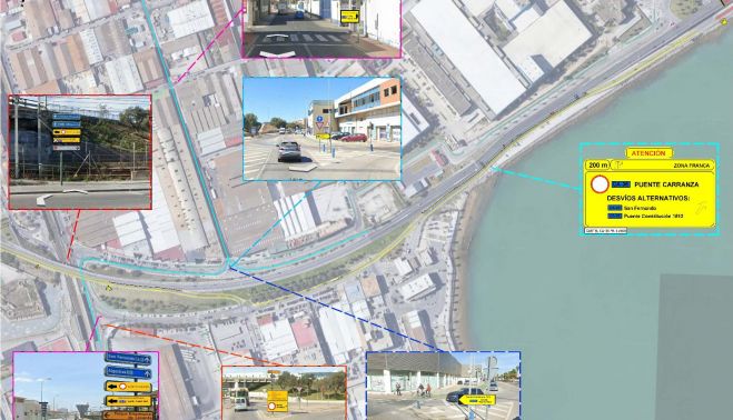 El tráfico de la CA-33, si accede a la CA-36, será desviado en la salida de Zona Franca y dirigido por las calles y avenidas señalizadas hasta la CA-35 y el Puente de la Constitución de 1812.