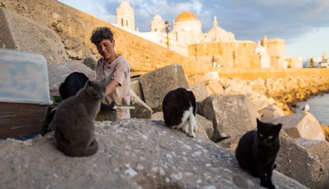 Muchas gaditanas y gaditanos seguramente recuerden a Cristina, quizás no por su nombre, pero sí por ser la mujer que alimentó durante años a los gatos del Campo del Sur en frente de Capuchinos. Cádiz Felina es la colonia a la que nos referimos y fue pionera en los cuidados a este tipo de gatos, conocidos como callejeros o ferales, ahora atendidos por las hijas de Cristina, que falleció hace pocos meses. La labor del cuidado animal también está fuertemente feminizada, motivo por el que desde Los África reivindican el trabajo de la cuidadora con A, a pesar de que también existan hombres dedicados a la causa. Estas mujeres, mal llamadas ‘las locas de los gatos’, realizan un trabajo encomiable sin ningún respaldo económico y bajo una fuerte estigmatización social. En la actualidad existe cierto choque generacional, pues las mujeres que se incorporan están más formadas que las cuidadoras de hace 50 años. “La mayoría de las cuidadoras de Cádiz son mujeres mayores que no tienen ni recursos ni medios para implementar el método CER que le estamos exigiendo al Ayuntamiento, por eso es tan importante la formación de las cuidadoras”, señala María.