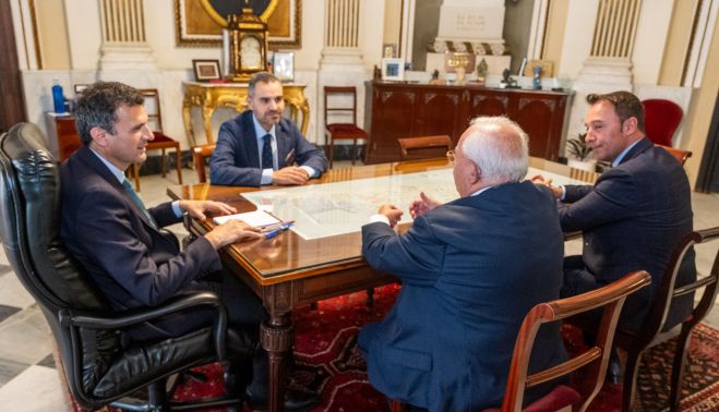 El alcalde de Cádiz, Bruno García, ha recibido al director general de Cadiship, Emilio Medina, y al vicepresidente de la Asociación Española de Consignatarios de Buques (Asecob) y director general de Pérez & Cía, Ramiro Cobo.