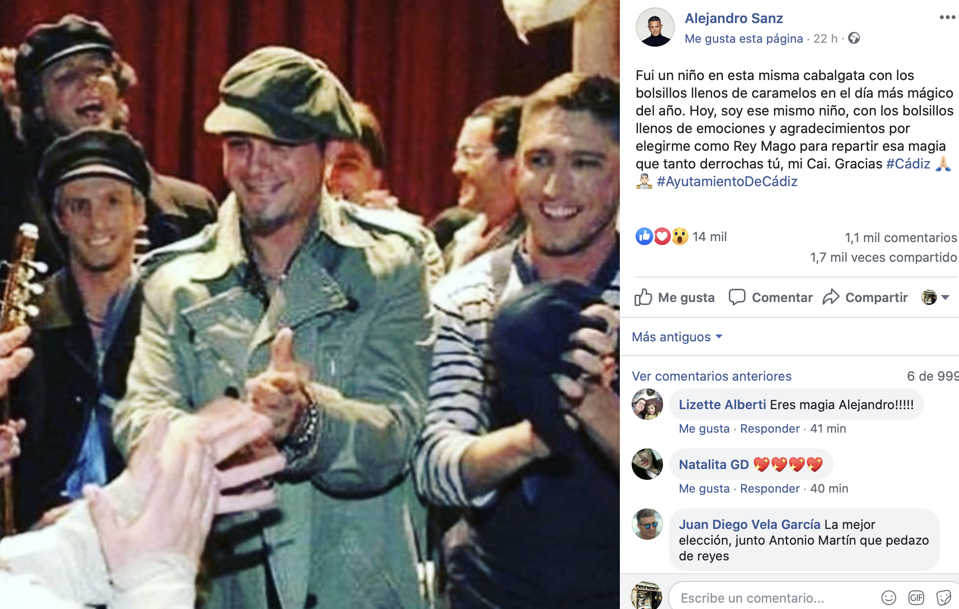 Así pues, aunque parece muy complicado por su agenda y su actividad musical que pueda participar de toda la agenda previa de los Reyes Magos, lo que sí es seguro es que Sanz encarnará al Rey Melchor en la cabalgata del 5 de enero de 2020 por las calles de la capital gaditana. Algo que se barajó como una posibilidad remota y que ahora se ha tornado en realidad. La expectación es máxima.