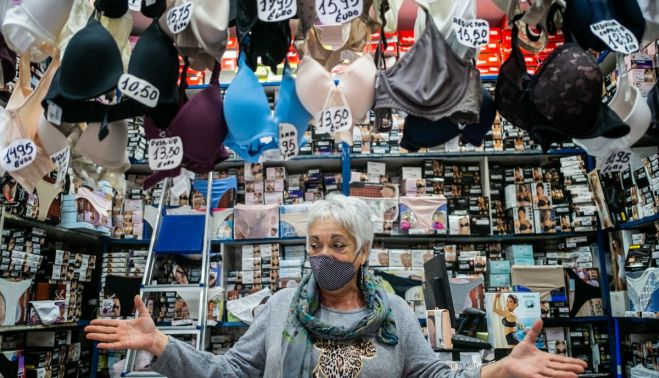 “Aunque lleve los años que llevo aquí, cerca de 40, siempre hay novedades y variedad en los géneros para todas las edades”, explica. “Las clientas demandan dependiendo la época, ya que muchas veces quieres apartar un género y de repente lo vendes muy bien… No hay una norma fija, palabra que es así”, acierta Amalia, que con solo mirarte las jeshuras te dice tu talla de sujetador o de bragas. Se acerca a un extremo del mostrador y alcanza parte de su género. “Estos sujetadores no son de importación y te valen de costo un dinero, los tengo a 13.50, a 6 euros, de 15,50... De la 90 hasta la 100”, aclara. “Si no tuviera esto controlado, ¿qué sería de mi pa’ encontrar algo? Te vuelves loca!” , espeta levantando y agitando los brazos. Y revela su clave: “lo bueno es poner las cosas en el mismo sitio, pero como las menee o haga hueco para meter un sujetador… ¡Ay, Dios mío! Pero vamos, que todo lo llevo pa’ lante. Es que me sale de aquí –señalándose las entrañas– como los buenos bailaores”.