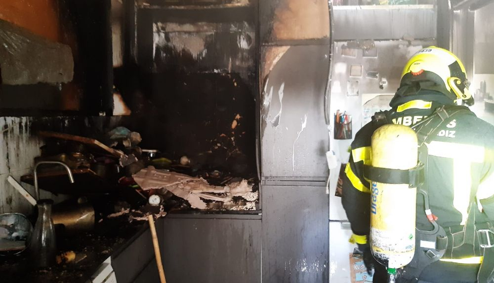 El incendio se localiza en la cocina de la vivienda, afectando a diverso mobiliario. Se extingue y posteriormente se ventila de manera forzada con turboventilador. Los bomberos acuden con dos vehículos autobomba y otro de rescate durante 40 minutos de intervención.