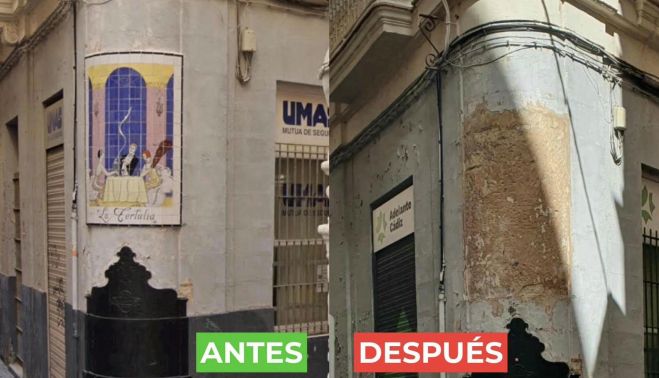 Una de esas piezas que forman parte del paisaje urbano de Cádiz sin que casi nadie repare en ellas ha saltado esta semana a la actualidad de la peor manera posible. El panel de azulejos decorativos situado en la esquina del número 18 de la calle Sagasta con vuelta a la calle Benjumeda, la esquina de la sede de Adelante, ha sido eliminado en los últimos días. Una situación denunciada en la cuenta Cádiz Abandonada.