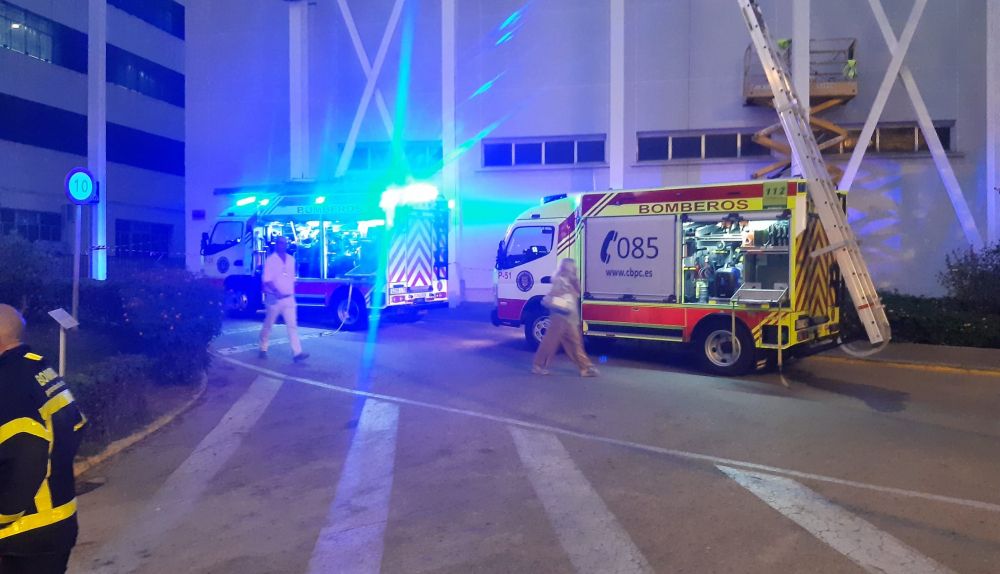 Los bomberos procedieron rápidamente a extinguir el fuego utilizando líneas de agua de 45 milímetros de diámetro. Su intervención se centró también en controlar la propagación de humos y gases generados por la combustión, dirigiéndolos hacia el exterior del recinto para evitar que afectaran otras áreas del hospital.