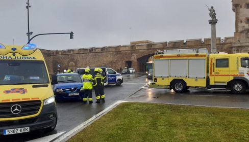 Bomberos del Consorcio Provincial de Bomberos de Cádiz del parque de Cádiz han intervenido a mediodía de este jueves en el rescate de una persona tras un accidente de tráfico ocurrido en la plaza de la Constitución, en Puertas de Tierra.