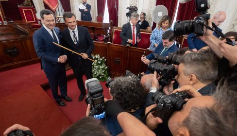 El segundo gran bloque de reconocimientos fue para el presidente de la Junta de Andalucía. García de León fue una apuesta particular de Juanma Moreno. El de Cádiz es uno de los ocho ayuntamientos de capitales de provincia gobernados ya por el PP. Sin embargo, es de los que no necesita la colaboración de Vox. Esa que siempre violenta, incomoda. Juanma Moreno agradeció esa ausencia en unas breves declaraciones a la salida de la casa consistorial.