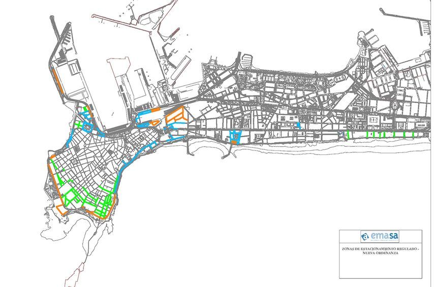 El Ayuntamiento de Cádiz aprueba las nuevas zonas de aparcamiento regulado en la ciudad de Cádiz en las tres modalidades (azul, naranja y verde) y los horarios de regulación en la línea de la nueva ordenanza de estacionamiento regulado que fue aprobada en el pleno. El gobierno da luz verde así a una nueva disposición de los espacios de aparcamiento en la ciudad ideada por la empresa municipal Emasa para mejorar la movilidad y facilitar la posibilidad de encontrar una plaza de aparcamiento en superficie en la vía pública al residente. Esos dos objetivos confluyen en la creación de una nueva zona, la llamada zona verde, y en la ampliación y adaptación de algunos aspectos de la zona naranja y zona azul.