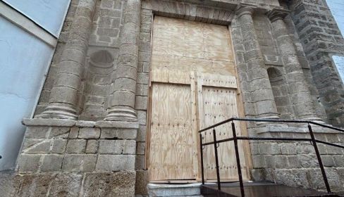 Los trabajos de restauración de la puerta principal de la Iglesia Conventual de Santa María ya están en marcha. El proyecto ha comenzado tras el acuerdo alcanzado entre la Cofradía del Nazareno de Santa María y la Fundación Cádiz CF, según han informado desde la hermandad.