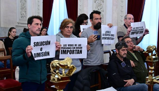 Entre los asistentes se encontraban activistas del Movimiento de Personas Sin Hogar y trabajadores de la empresa encargada del mantenimiento de parques y jardines, que protestaron durante el pleno y exigieron la paralización inmediata del llamado "protocolo de la vergüenza". Un portavoz del colectivo reclamó "un techo" para una mujer y un hombre de 75 años a quienes, según denunció, se les ha negado que puedan dormir en el Centro de Día Fermín Salvochea, donde en teoría es posible pernoctar desde hace semanas.