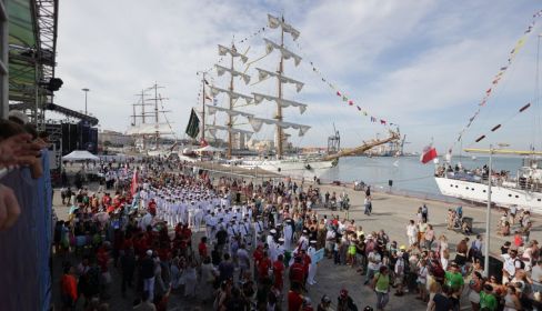 José Javier Bertrand, de impoluto blanco, rompió para descansar la impresionante formalidad de su grupo. El joven guardiamarina mexicano quizás excitado por la solemnidad del momento, resume la parada y la escala de forma tajante: "La Gran Regata no podía tener un final más bonito. Esta ciudad es muy hermosa y muy cariñosa". Un grupo folklórico mexicano aportaba un contraste de color, ritmo y alegría a todo el cortejo.