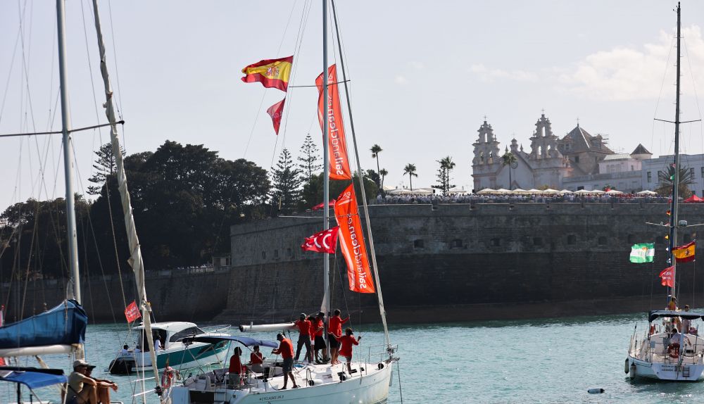 "Es que este ambiente no se ve en ningún otro sitio. Hemos ido a muchas competiciones de la Sail GP y de otras competiciones. Nada que ver. De verdad. No es por ser diplomáticos. En ningún sitio se celebra algo así tan cerca de una ciudad como esta, toda llena de gente", afirma Mildred Bailley junto a su pareja, Stephen, dos irlandeses de Eire sin apenas acento, de tantos trienios, que viven en Sevilla y bajan hasta Cádiz por segundo año consecutivo.