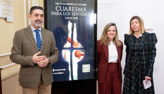 La teniente de alcalde de Cultura, Maite González; el concejal de Hermandades y Cofradías, José Manuel Verdulla; y la delegada de la Fundación Cajasol en Cádiz, María del Mar Díez, han presentado el programa ‘Cuaresma para los Sentidos’, una propuesta impulsada por la Fundación Municipal de Cultura.