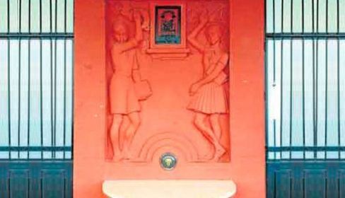 El Ayuntamiento inicia los trabajos para que la obra del escultor Juan Luis Vassallo Parodi deje de presidir la fachada principal del CEIP Santa Teresa.