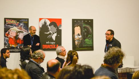 Además, Calvichi's amplía su participación en el Shorty Week de este año con una exposición de carteles de cine que podrá visitarse durante todo el fin de semana en el Baluarte de la Candelaria. Un total de 10 carteles con obras clásicas del cine, como Star Wars, Drácula, Alien o Regreso al Futuro. También pueden adquirirse, ya que los originales están a la venta. Y es que las posibilidades de este calvito regordete es interminable. Todo comenzó en el año 2013, con una primera exposición sobre agrupaciones callejeras del Carnaval de Cádiz. "Allí una señora nos propuso que si podíamos hacerle The Beatles con ese muñecote gordo y accedimos. Aunque nunca volvimos a ver a la señora, aquello dio pie a que Jota dibujara The Beatles y de ahí a la exposición de Mitos del Rock".