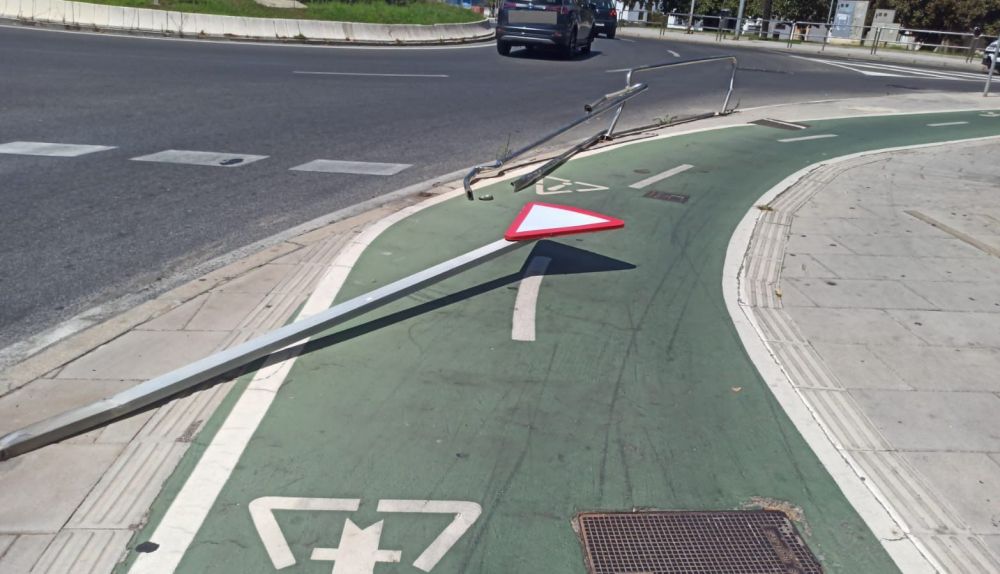 En concreto, ha golpeado una protección en la glorieta que une las avenidas de San Severiano y de la Sanidad Pública, tumbando también una señal de ceda el paso, de las que se ubican a la entrada de las rotondas.