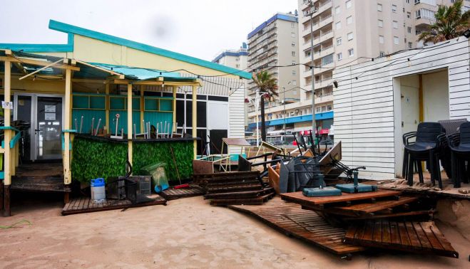 El establecimiento más afectado es uno de los chiringuitos del Grupo Potito, situado frente al edificio Reina Victoria. Su propietario, Miguel Ángel Sánchez, explica a lavozdelsur.es, pese a los daños, se está actuando con rapidez para minimizar los riesgos: "Lo que estamos haciendo ahora es reforzar la estructura desde abajo y retirar la arena acumulada. Ha habido un poco de hundimiento en algunas paredes, pero esperamos que, con las medidas que tomemos, la situación mejore", señala, manteniendo la cautela ante la evolución de la jornada.