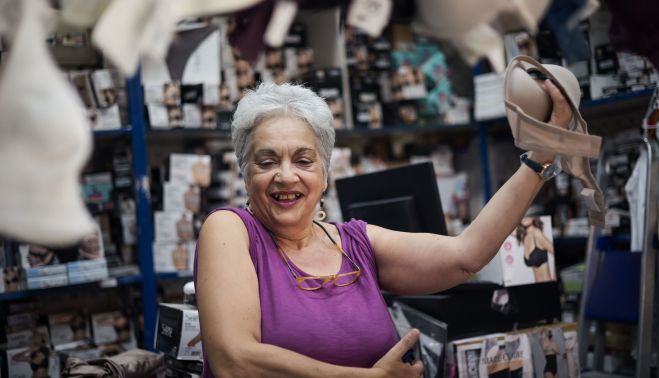 Su autoridad llegó a superar el autoconocimiento de las compradoras: “A veces, la talla que te decía, o la copa, era otra diferente a la que tú creías tener, a la que usas. Amalia te lo discutía con dulzura, con su ángel y, al final, resultaba que ella tenía razón. Sabe más del cuerpo de las clientas que ellas mismas”. Así resume Ana, que además es vecina de la calle y se para ante la puerta atestada, como siempre, para dar testimonio del talento instintivo de Amalia.