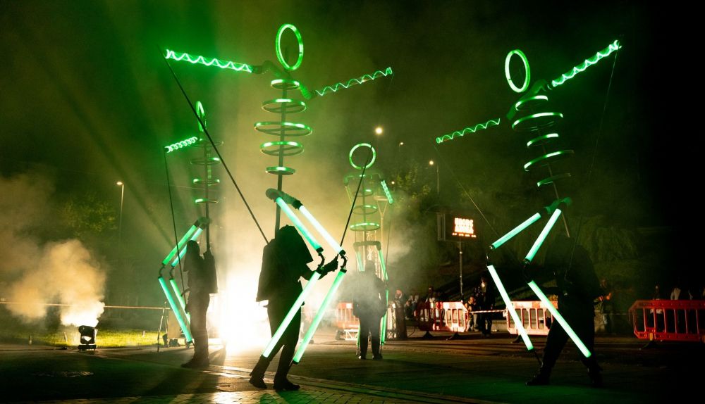 La jornada culminará con Elipsión, el esperado estreno callejero que marcará el inicio del FIT en las calles gaditanas. A las 22.00 horas, desde la Plaza del Teatro Falla, partirá este espectáculo itinerante de la compañía gaditana El Carromato. Será un despliegue de marionetas gigantes iluminadas, esculturas móviles y música en directo, una fantasía visual que reflexiona sobre los límites de la inteligencia artificial y envuelve al público en un universo de luz y color.