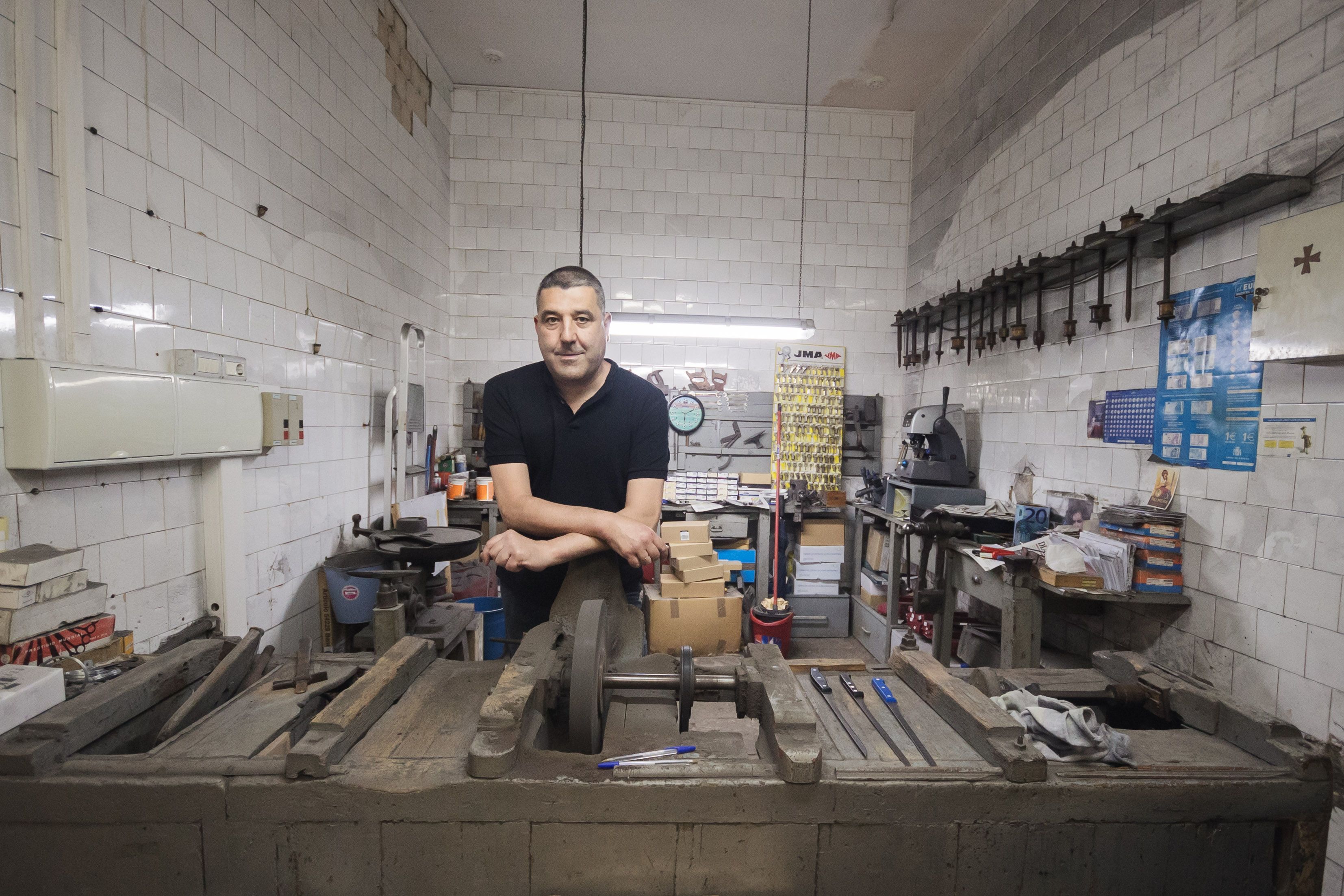 La cuarta generación de Serafines afiladores también comenzó a trabajar desde muy joven en este oficio. "Me crie en la casa de arriba de la cuchillería y a los 16 ya estaba trabajando aquí. Al principio compaginaba el instituto por la mañana y el trabajo por la tarde, pero después de cursar un FP, me metí de lleno en el negocio", asegura Serafín que ya lleva 37 trabajados a sus 53 años. "A veces se hace monótono, pero estoy contento con lo que hago y es bonito sentirse reconocido por este oficio", admite, aunque para la quinta generación, la de su hijo, no tiene tan claro que quiera que continúe. "Yo quiero que mi hijo haga lo que quiera, que se forme y se prepare, porque estoy es muy duro", espeta.