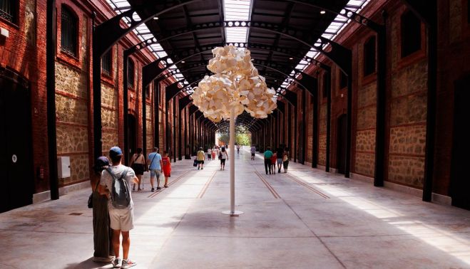 "Aquí no había nada, dentro de la nave estaba todo hueco, sin todo esto que se ve ahora. A todo lo largo, estaba vacía y metíamos los fardos de tabaco que llegaban por tren, cada uno pesaba 120 kilos y lo llevábamos en carretilla", dice Antonio Montiel, a punto de cumplir 92 años y antiguo trabajador, durante 39, de los Depósitos de Tabacalera en el barrio de Loreto.
