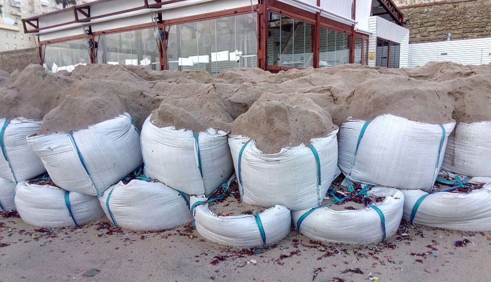 "Desde el día 1 vimos que la cosa se ponía fea. Y era la primera vez..., nunca nos habíamos enfrentado a algo así", comparte el dueño del Pikachos. Si bien el primero de marzo hubo una marea de 104 grados, la previsión para el día siguiente era peor, con 106 grados de marea y vientos que alcanzarían los 57 kilómetros por hora. Por desesperación, el gaditano se aproximó a Santa María del Mar para —aprovechando la bajamar— colocar un muro de sacos. "Pero como vimos que eran insuficientes, compramos sacos de obra, que son muchos más grandes". Confiesa que dudaba que aquello fuese a resistir así. Sin embargo, "al final nos fue bien", comparte serio, y es que está a la espera de que el temporal amaine para empezar a desmontar su chiringuito.