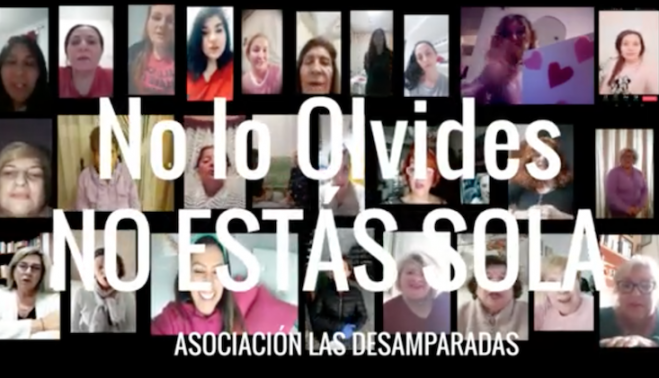 Rosa Núñez, presidenta de Las Desamparadas, expresa: "Quería mandarte un mensaje a ti, que sé que lo estás pasando mal y más con estos días de confinamiento al lado de tu agresor, aguantando. Quiero decirte que no estás sola, que nosotras estamos contigo y así os lo demostramos”.