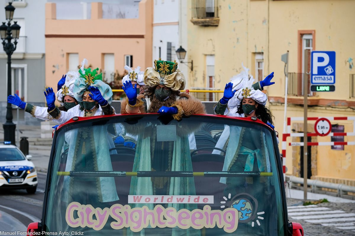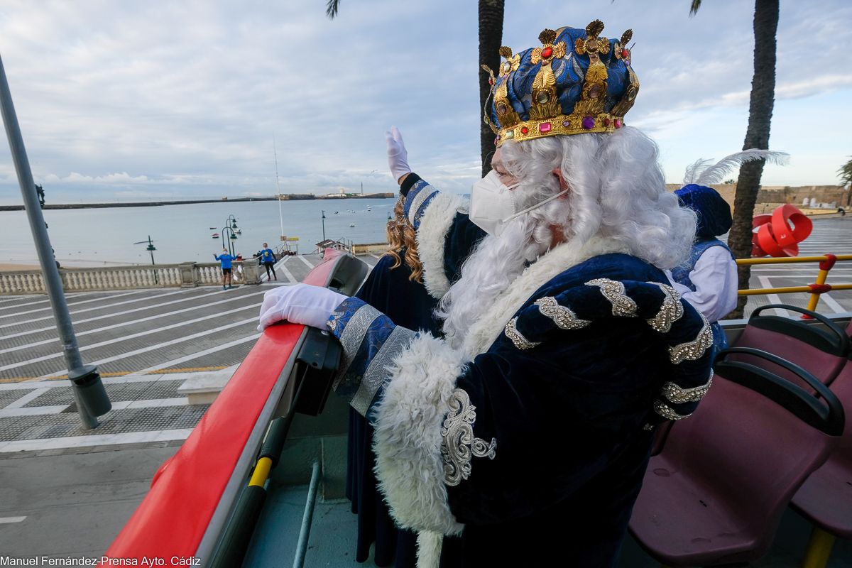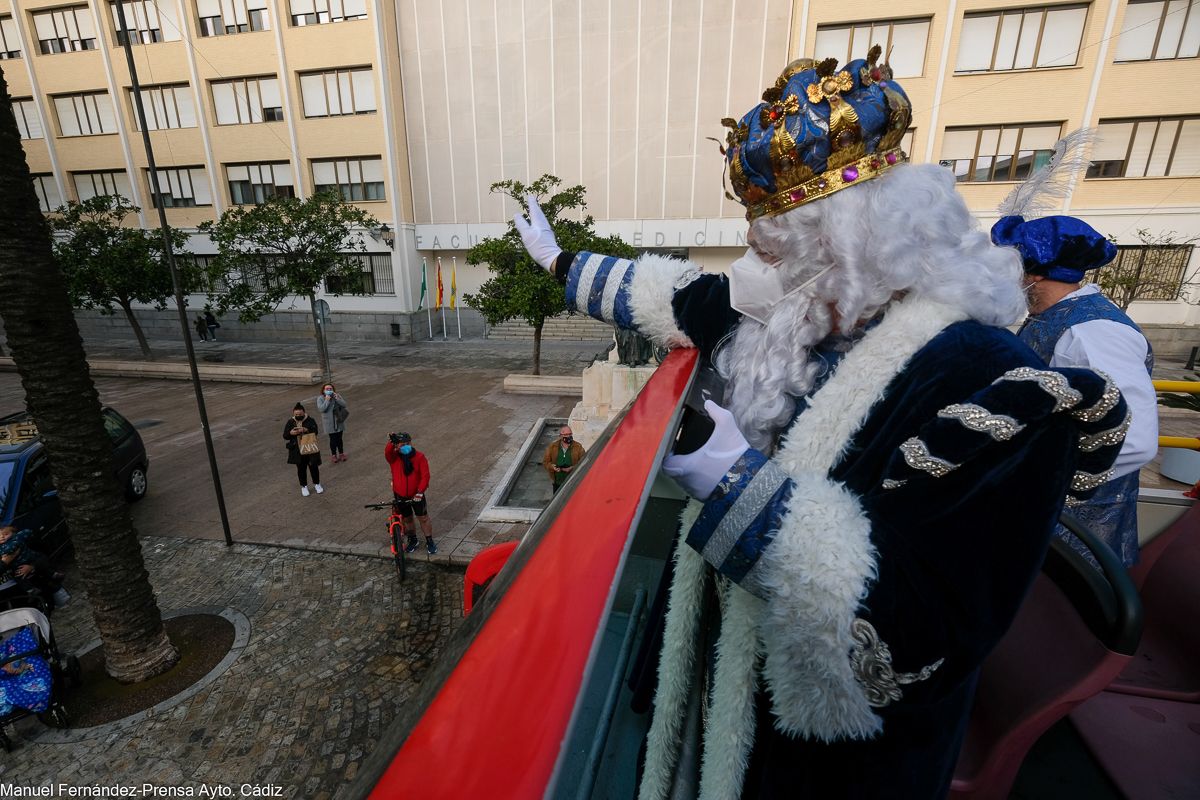 Cientos de niños y niñas han salido a las calles de Cádiz esta mañana para ver a Sus Majestades los Reyes Magos, a la Estrella de Oriente y al Cartero Real junto a sus séquitos. Hoy es un día especial, la noche más mágica del año se acerca y los pequeños, acompañados de sus familias han podido disfrutar siguiendo las medidas de seguridad establecidas. En el año de la pandemia, la ilusión se mantiene en la capital gaditana que ha dado la bienvenida a Melchor, Gaspar y Baltasar sin aglomeraciones.