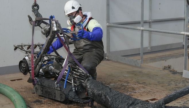 Asimismo, el control remoto del nuevo equipo reduce la presencia del operario en lugares peligrosos, y su diámetro mínimo de aspiración (de tan sólo 150 mm) le permite llegar a lugares pequeños o no accesibles. Por otro lado, su dinamismo y la variedad de accesorios permite su configuración para otras aplicaciones, tales como la limpieza de digestores, tanques u otros, conectándolo a un camión mixto y sustituyendo a la tobera empleada habitualmente.