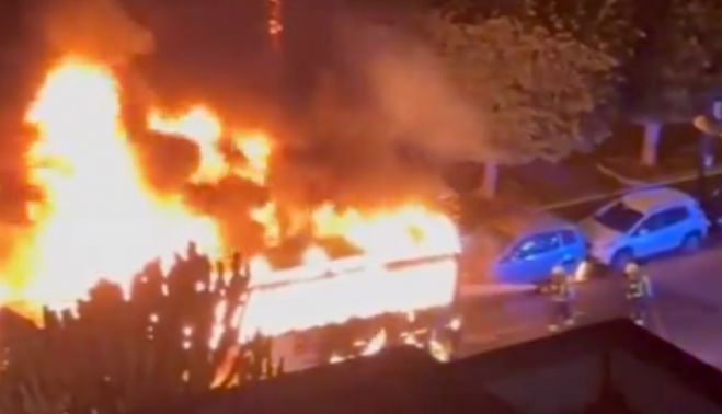 Un autobús de la empresa Rico ha salido ardiendo sobre las siete de esta mañana en Cádiz. El vehículo ha quedado totalmente calcinado en cuestión de minutos. Tres coches que se encontraban estacionados donde ha tenido lugar el suceso se han quemado por completo, mientras otros dos coches han sufrido daños parciales.