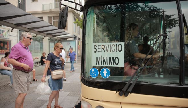 Los autobuses que circulaban, la mitad de los disponibles en cualquier jornada común y con carteles que les identificaba como "servicios mínimos" también llegaban más cargados de pasajeros de lo normal a cada parada.