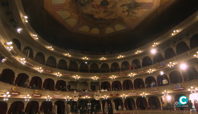 Va a ser una de las imágenes del Concurso Oficial de Agrupaciones Carnavalescas (COAC). En el final de la sesión de este martes las autoridades del teatro han desalojado la parte superior del mismo, que incluye al paraíso (gallinero) y anfiteatro para recolocar a las personas que quedaban a altas horas de la noche en el patio de butacas.