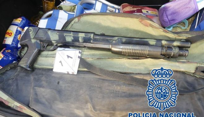 En el registro realizado en el coche, se encontró un subfusil que tras su estudio resultó ser un arma de airsoft (aire comprimido), así como otros objetos y prendas utilizadas en el robo.