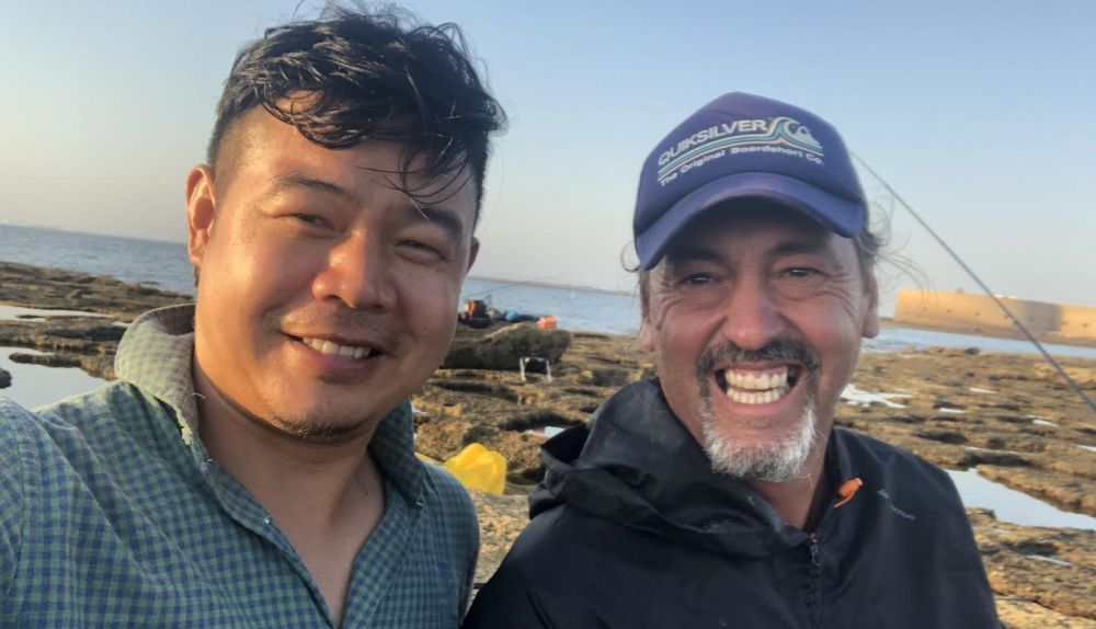 Allí fue donde comenzó a pescar. En Cádiz, cambiando la flor de loto por la rosa de la Caleta, tuvo un encuentro fortuito con una de las piezas fundamentales de la playa. Y no, no estamos hablando ni de Quiñones ni de Paco Alba. Tampoco de Juanito Villar. Sino del mismísimo chirigotero Juanlu Cascana. "Es muy buen cantante de Carnaval, también muy famoso en la Caleta, donde trabaja limpiando", describe Juan Cai.