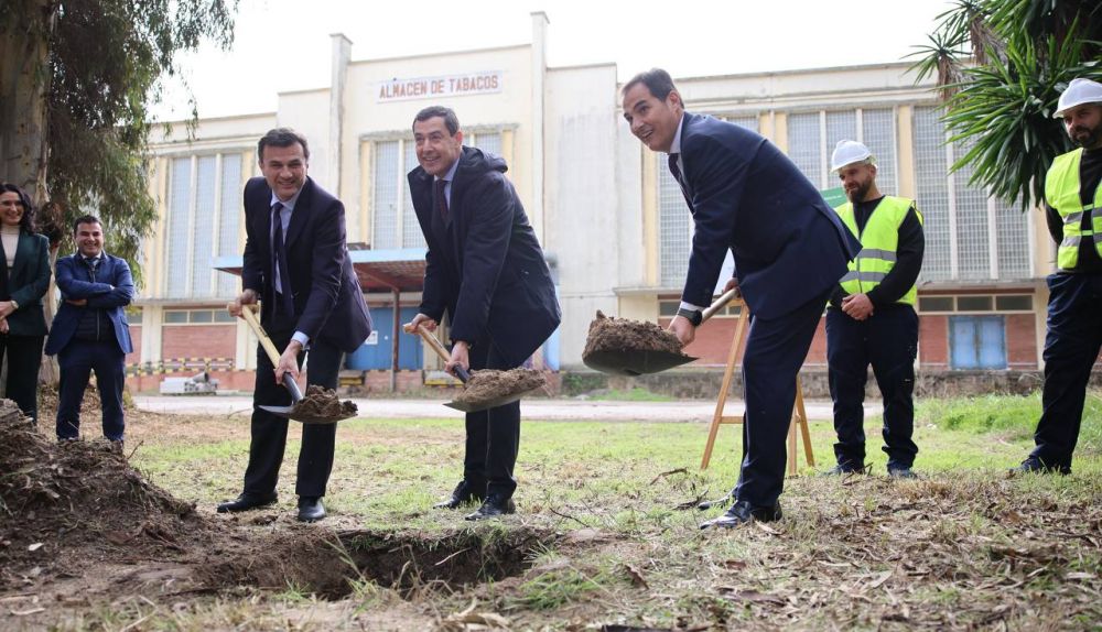 Juanma Moreno fue generoso en retórica tradicional. "Es una patata caliente que lleva guardada décadas en el cajón". Así definió la Ciudad de la Justicia en Cádiz, al que colocó la simbólica primera piedra junto al alcalde Bruno García.