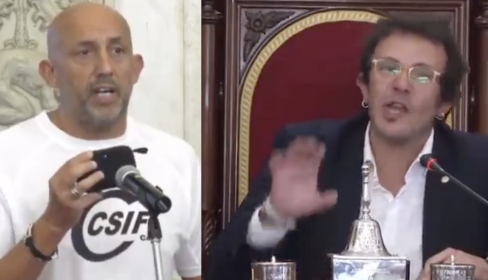 "Tiene tarea pendiente, señor alcalde", concluye su performance José Benito Santos González, policía local y delegado sindical de CSIF. "Y usted canta cada día peor, se lo puedo asegurar", le replica el alcalde de Cádiz, José María González Kichi. Benito, ha contrarreplicado: "Hay que mirar el fondo, no la forma".